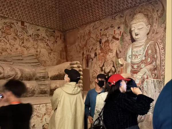 另一张照片中,邓伦与朋友们站在一起,他双手抱胸,抬头看着墙上的画,似乎很有兴趣的样子。