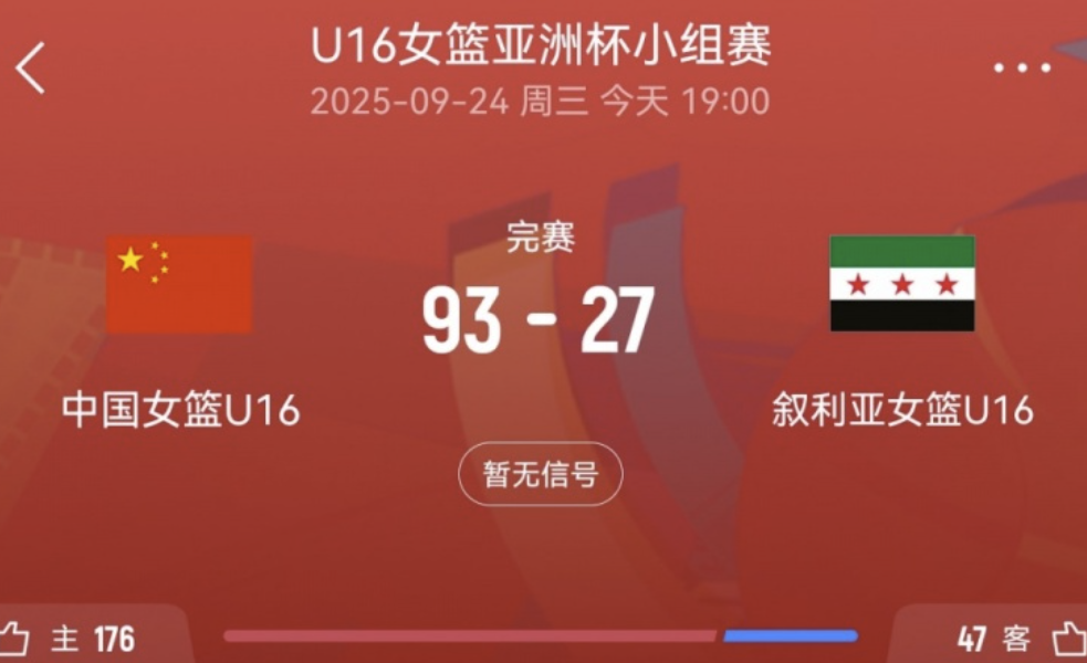 最后,叙利亚女篮下半场两节一共得了9分,半场9分比中国队的任何一节总得分都少。中国U16四节比赛的总得分是23分、18分、16分和36分,基本全程碾压毫不留情,叙利亚队后面两节比赛,基本每节只能进两个球。