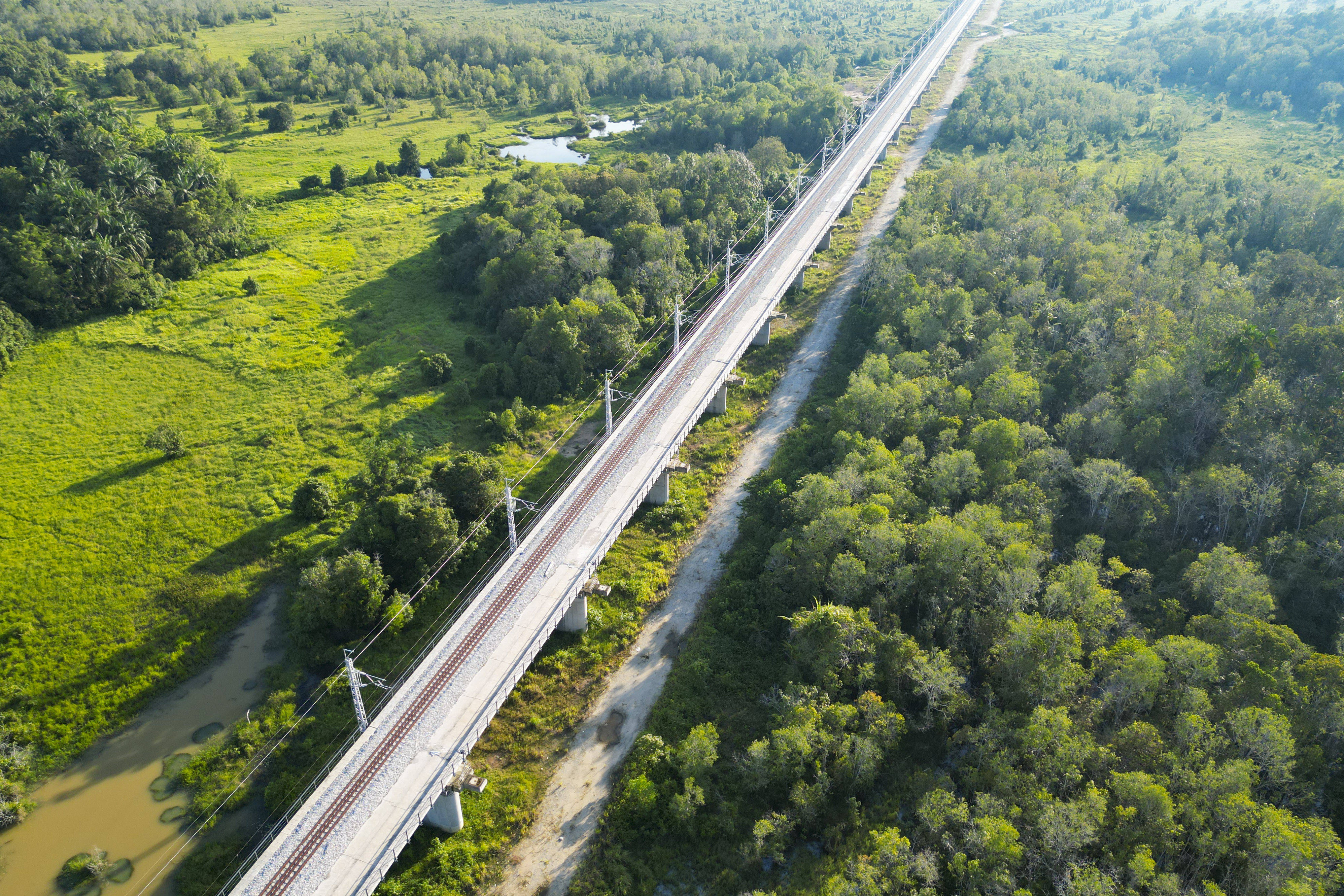 新华社马来西亚关丹11月3日电(记者王嘉伟 程一恒)从车窗向外望,青蓝的天空铺展成幕,云层在光影中明暗变幻;两侧棕榈林与湖泊湿地交替掠过,也不乏偶然闯入画面的猴子、水鸟与野鸭。画面中央,钢筋混凝土基座上的轨道折射出金属光泽,笔直伸向远方,直到聚成一点。