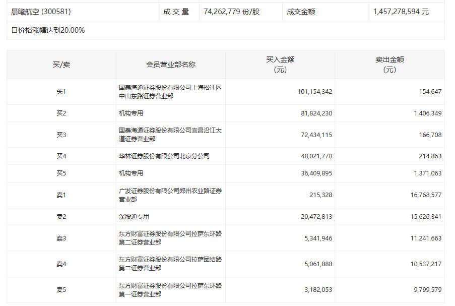 晨曦航空今日20cm涨停恒正网配资,2家机构专用席位净买入1.15亿元晨曦航空今日20cm涨停,2家机构专用席位净买入1.15亿元